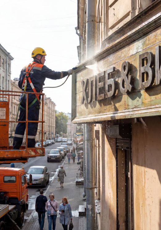 Преимущества профессиональной мойки вывесок: - Полностью удаляется накопившаяся грязь, пыль и налет. - Восстанавливается яркость цветов и четкость изображений. - Продлевается срок службы материалов и световых элементов. - Повышается видимость и читабельность текста даже в условиях плохой видимости. - Поддерживается аккуратный внешний вид, способствующий положительному имиджу компании. Как проходит процедура очистки? Наши опытные сотрудники используют современное оборудование и экологически чистые моющие средства, подходящие для каждого конкретного материала. Процесс включает: - Предварительный осмотр состояния конструкции. - Очистку поверхности от загрязнений специальными средствами. - Проверку исправности осветительных приборов и устранение мелких неисправностей. - Финальную проверку качества выполненных работ. - Регулярная профессиональная чистка позволит вам поддерживать высокий уровень внешнего вида вывесок и эффективно привлекать новых клиентов. Доверяйте заботу о чистоте вашей рекламы специалистам — обращайтесь в нашу компанию!